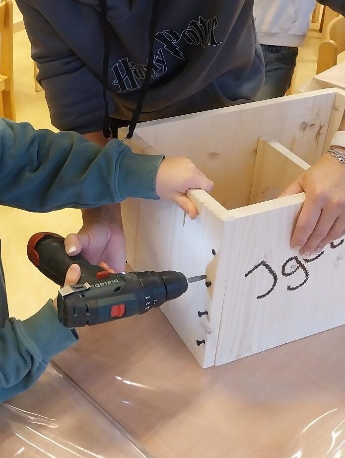 Ein selbstgebautes Igelhaus für den weiteren Pflegeigel „Speedy“, da Rosi bereits ein eigenes Igelhaus besitzt. Zusätzlich brachten die Kinder getrocknete Mehlwürmer und Katzenfutter mit.